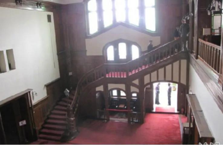 室内布置大部分皆为原始的家具,古色古香的传递着昔日的繁荣;装饰典雅华贵,楼梯、拱顶处处雕花,每个房间的壁炉绝无相同的款式,其上镶嵌流光溢彩的玉石;各式各样的壁灯、吊灯与每个房间的装饰相得益彰,一吨重的铜质水晶吊灯华丽气派;
