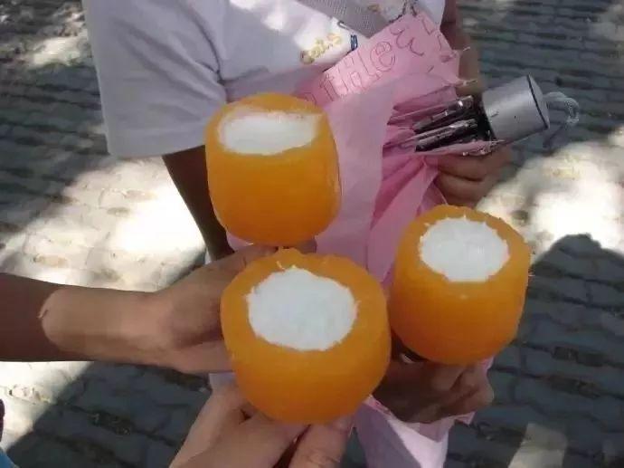 怀旧理由:先拿小勺一点点把中间挖空,外皮再“嗷呜”一大口吞掉!牛奶的香甜和菠萝味冰棒的冰爽,满足了贪婪的小小的胃。