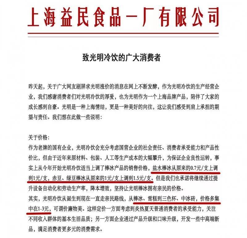 这份声明已在朋友圈刷屏,好多吃货表示:“这份声明看起来真诚、让人感动!”但一想到不涨价不进超市,以后就有可能再也吃不到赤豆棒冰、盐水棒冰、冰砖、三色杯…真的要急出汗了