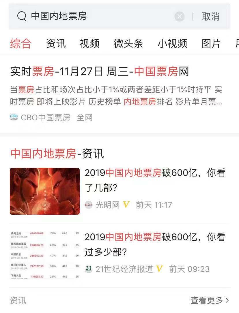 想了解更多有关中国内地票房的信息,可以直接用今日头条app上方的搜索框输入“中国内地票房”关键字进行搜索,下面是部分内容反馈---