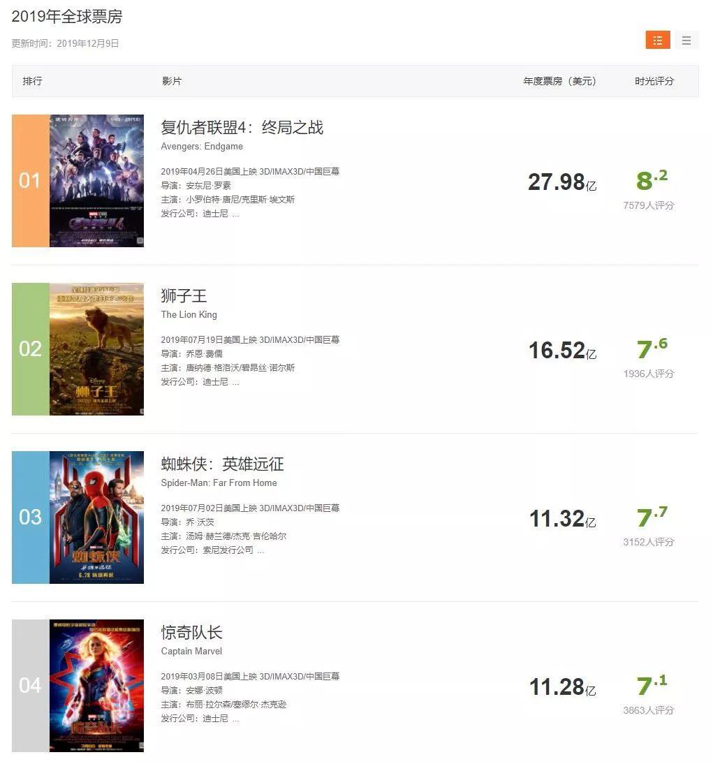 如果2019年是国产动画集体爆发的年份,那这一年也同样是迪士尼刷新影史新成就的里程碑之年。