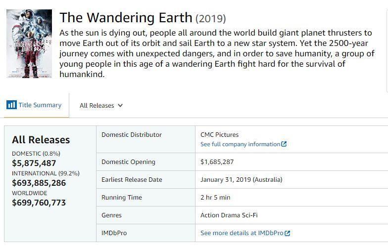 比方说今年最典型的两个例子:《流量地球》在中国内地攫取了46亿票房,然而去到北美地区,却仅有580万美金的营收。