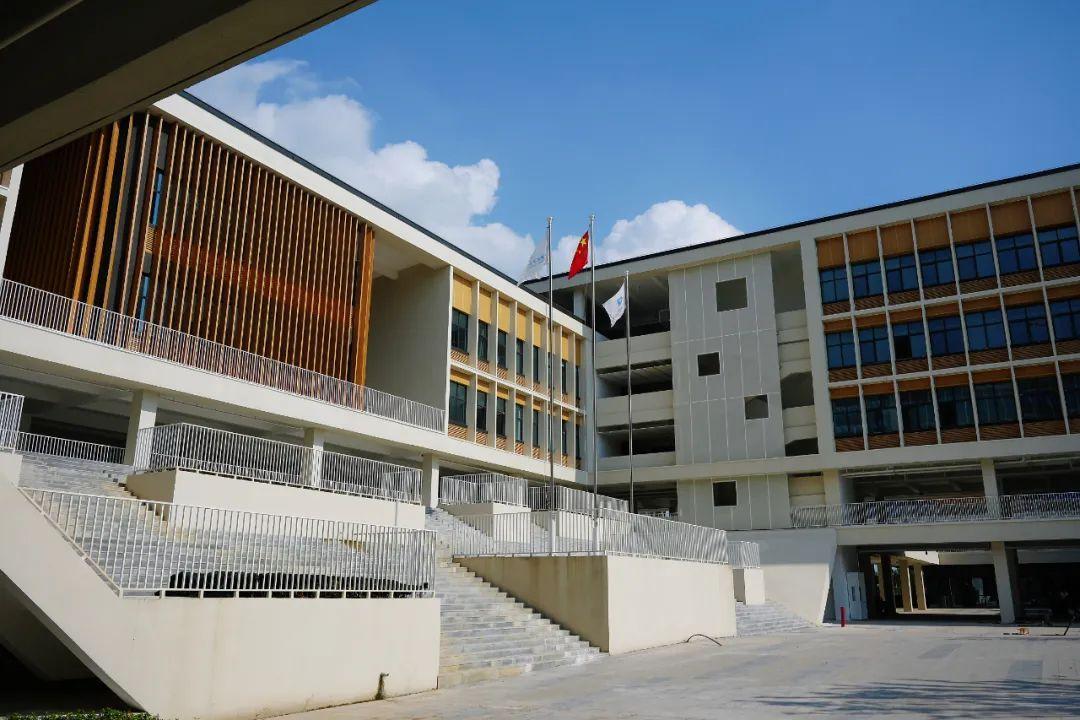 绕校园一圈,能够直观地看到教学楼、综合楼、艺术楼、实验楼、宿舍楼等多栋功能性建筑楼,所有建筑楼均有连廊相接,可以互通。据了解,后期每栋楼都会有属于自己的名字,如“晨曦楼”“丽泽楼”等,而“晨曦”“丽泽”等别致的名字都是从北京师范大学地名楼名的元素中来。