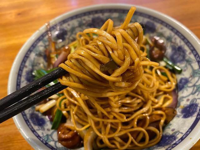 和拌川一起霸占杭州面食江湖的还有拌川,脱离炒面的干,拌川的口感是软润的,它不是炒面,又不是单纯的拌面。