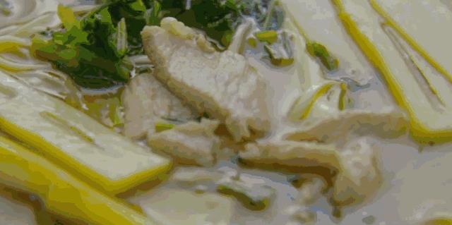 一碗片儿川里主要的浇头雪菜、笋片、瘦肉片组成。在外省人看来,这不就是一碗雪菜肉丝面吗? 在杭州的面馆中,早上还有一种东西非常受欢迎,也是可以免费添加的猪油渣。