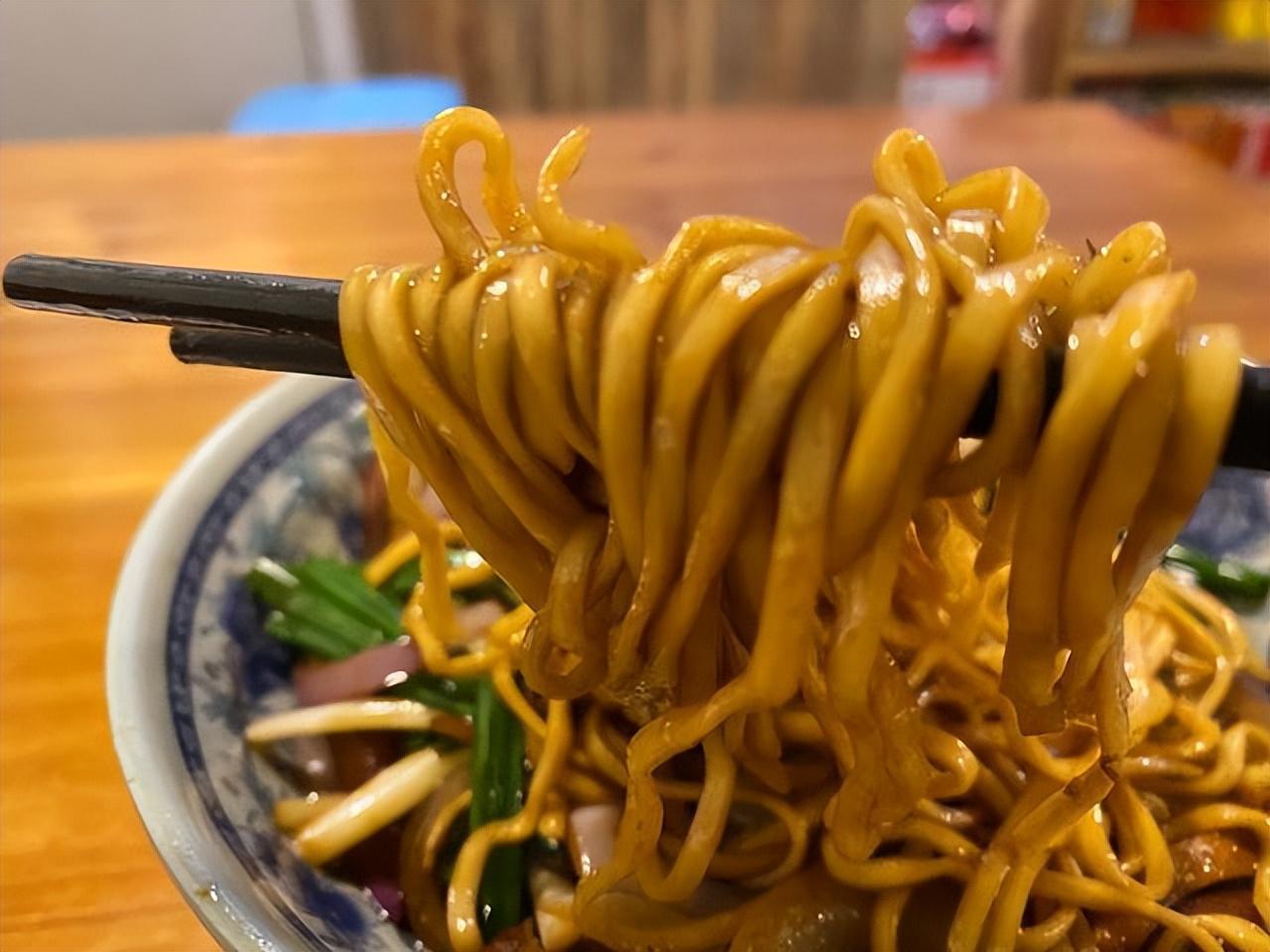 拌川的面条是宽面,煮面的时候火候不需要过大,这样煮出来的面条可以保持入口口感的劲道。