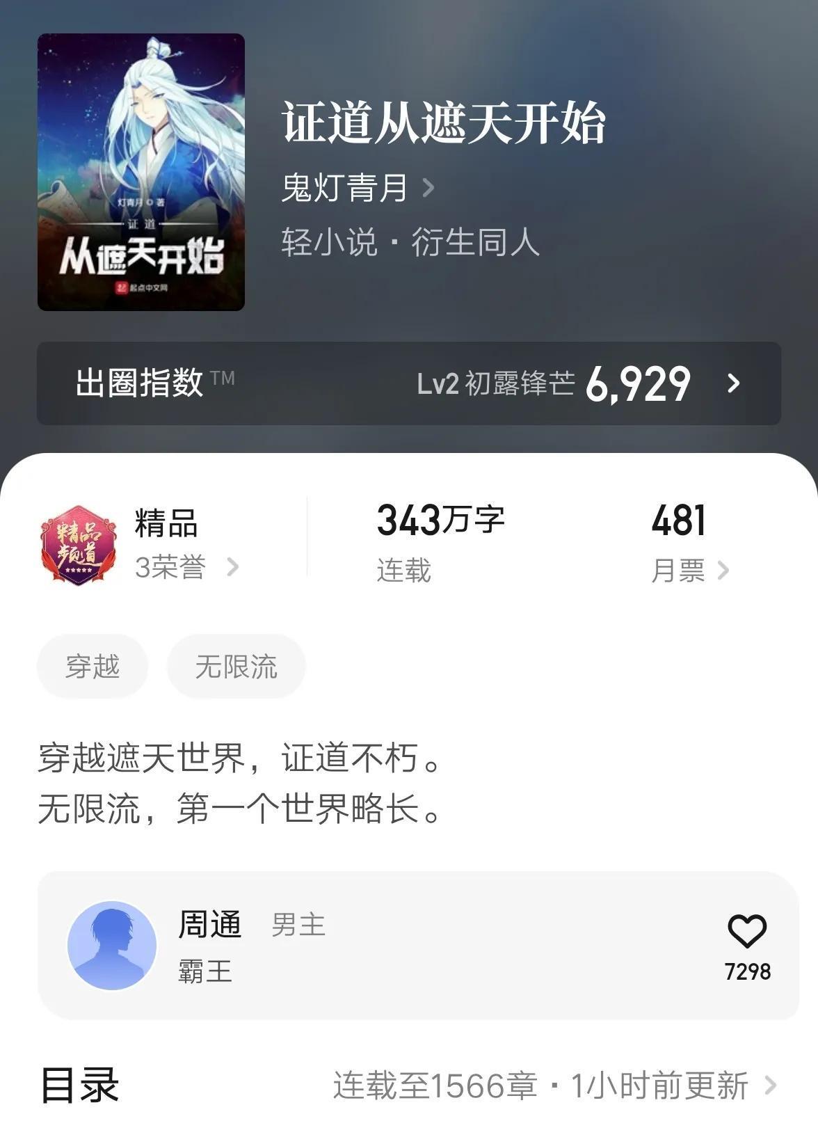 不过,要说出色的同人文,小编又想起两本。一本是《遮天》的同人文《证道从遮天开始》,一本是《吞噬星空》的同人文《吞噬星空之太上问道》。两本都是无限流小说。