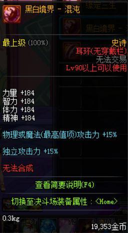在90级的版本中出现了新的首饰位置-耳环,新的防具中我推荐玩家们选择黑白境界-混沌这件首饰,可以让机械元首玩家的魔攻能力更加强大,也是史诗中出现的新品非常适用于90级版本。