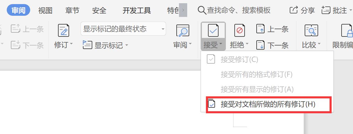 无标记但是修改的内容还在,浏览过程一一确定修改意见是否接受。我一般是看完直接选择接受对文档所做的所有修订。也可以根据旁边的上一条或者下一条慢慢审阅。