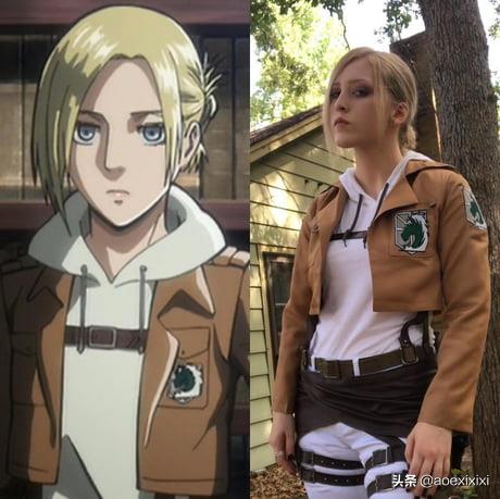 ▼她换上调查兵团制服后看起来更像亚妮·雷恩哈特,简直就是从二次元走出来的角色本身!