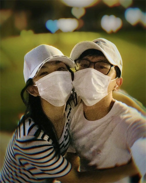 照片中,张杰身穿白色T恤,戴着黑框眼镜和白色棒球帽;谢娜也戴着白色棒球帽,双手抱着张杰与之紧紧挨着,夫妻俩非常甜蜜。