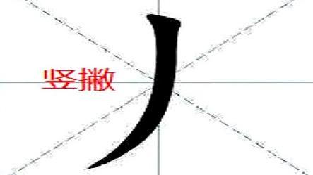 下笔稍重,由重到轻向下行笔,行至撇的长度大半部分处,向左下撇出,收笔时出尖。