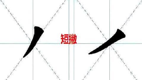 起笔写法同斜撇,但短撇大多数书写速度较快,就是永字八法的“啄”法,只是笔画较短。