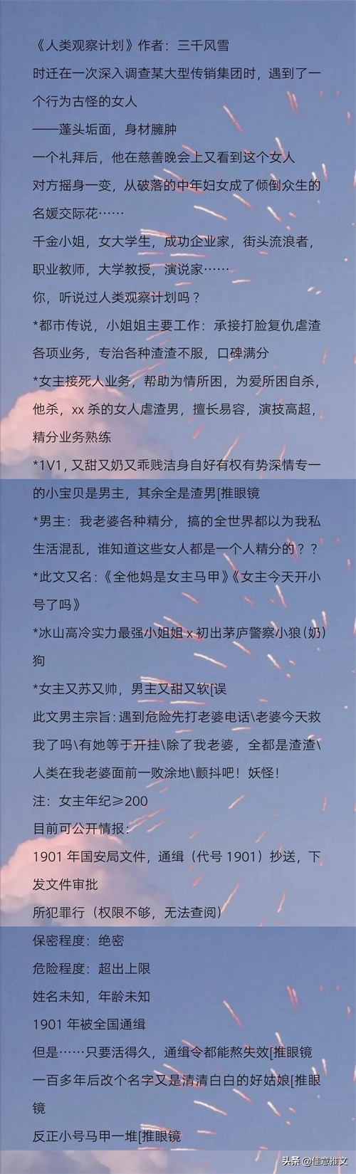 哇,你能看到结尾,那你真是喜欢这类小说,这几本书简介都超长,所以放在了一起。