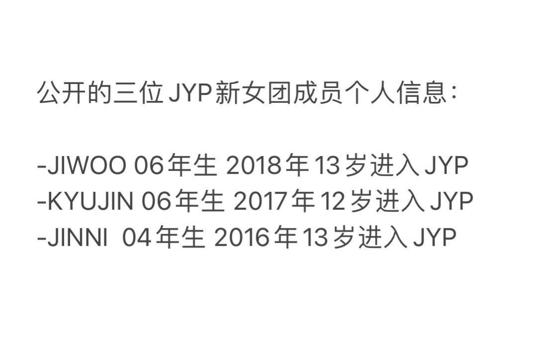 jyp将会推出新女团的事,一直都有风声,就在上月jyp通过油管公开了三名女练习生跳舞的视频,她们将会是新女团的成员。三名成员中最大的是04年的,最小的是06年的,这也就意味着这将是一个全部00后的女团。
