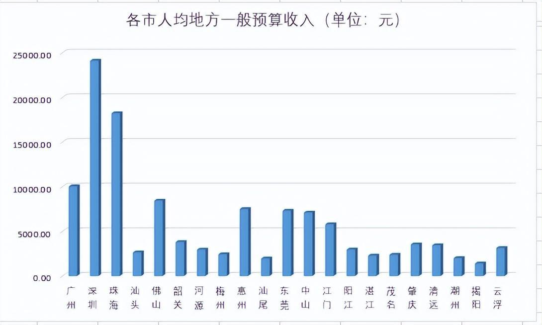 上图:广东各市的地方一般公共预算收入(数据来源于广东省统计年鉴2022)