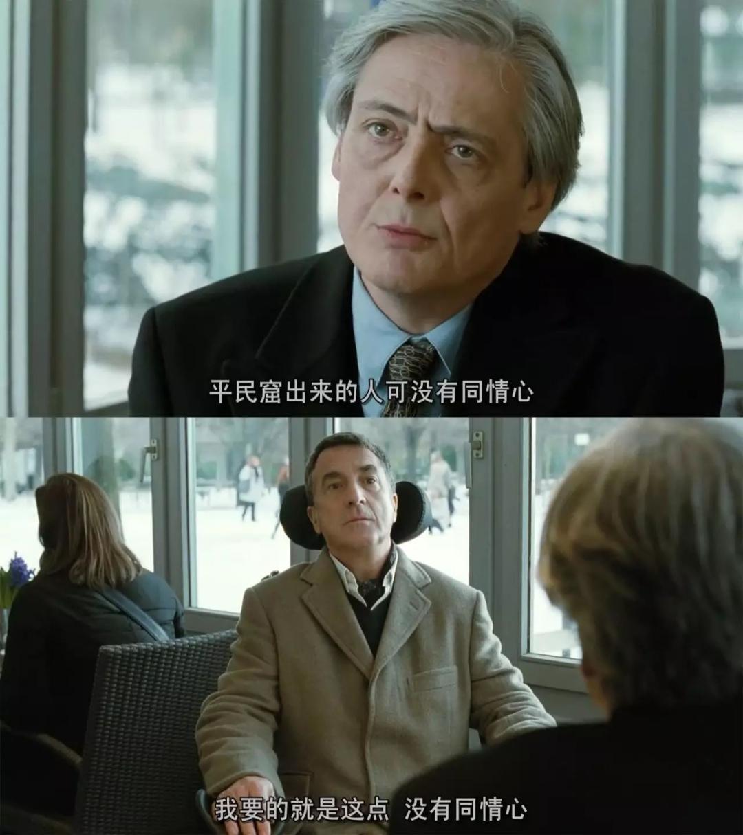 这也解释了菲利普为什么选择德希斯作为他的仆从,因为只有德希斯不会把他当成残疾人,菲利普的眼中没有同情,正如菲利普对老友说的: