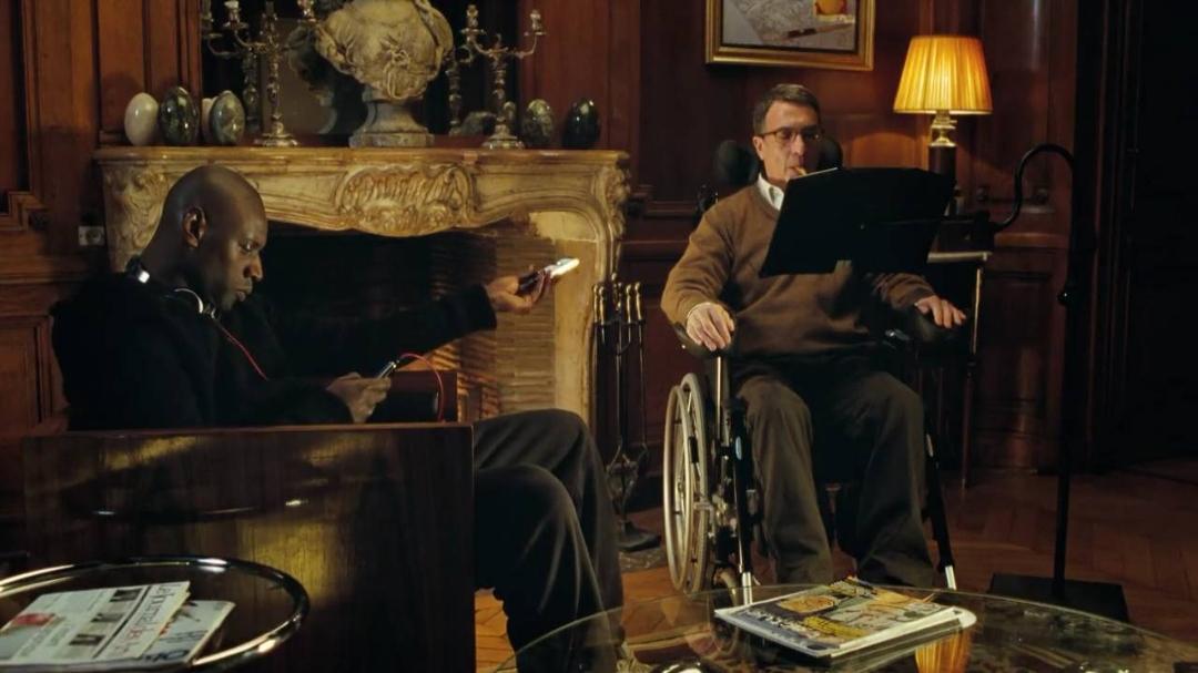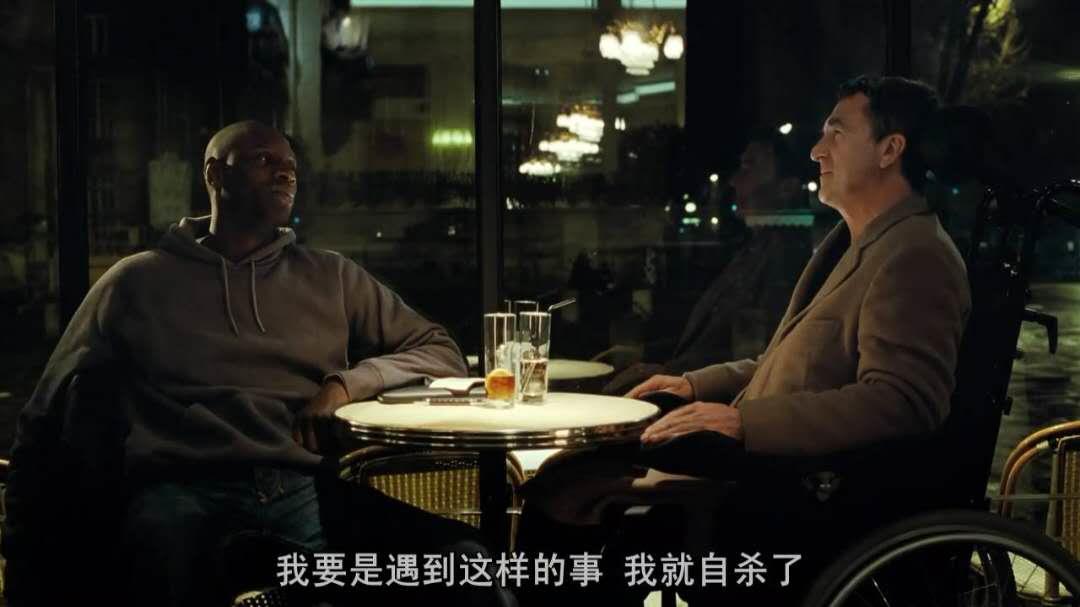 电影里有一个细节,菲利普的电话响起,让德希斯帮忙接电话,德希斯想都没有想,伸出手就递给了菲利普,菲利普当然无法抬起手去接电话。这一瞬间的画面,搞笑有尴尬,主仆两人都笑了。