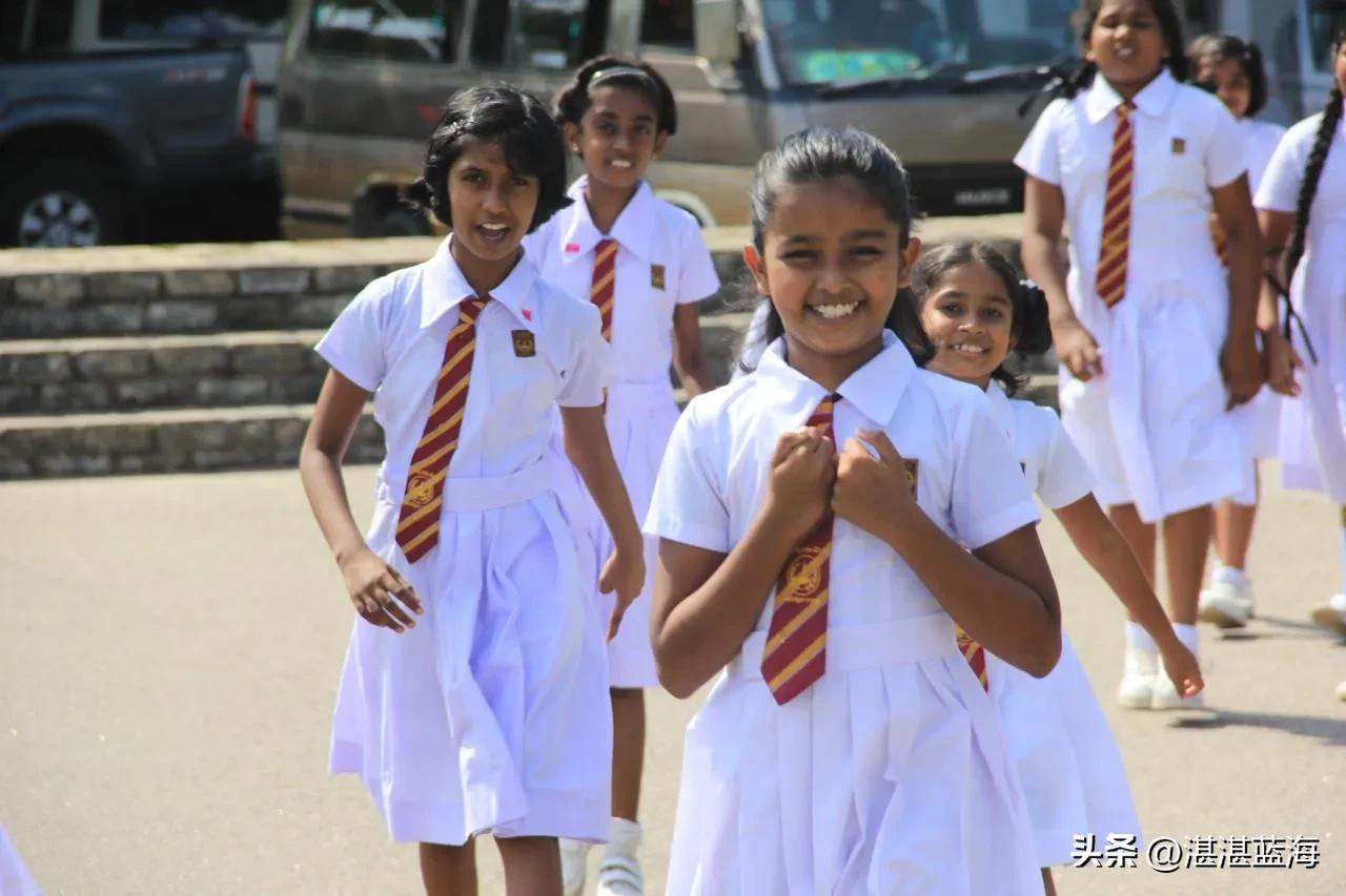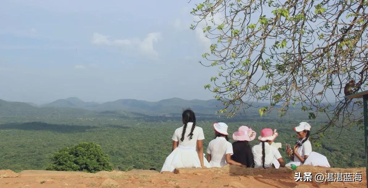狮子岩上看风景读斯里兰卡小学生,湛湛蓝海拍摄