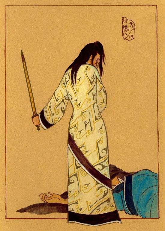 聂政使出腾挪之术,撩开守门卫士,见端坐大堂之上端坐一人,依稀就是那侠累,拔剑而起,挥剑直奔侠累而去,左右卫士阻挡,都被聂政格毙。眼看聂政剑到眼前,仓促之下,侠累将手中酒壶掷出,自己奔后堂而去。聂政举剑荡开酒壶,周边卫士趁这功夫已经围拢上来,聂政明白今日如果不将侠累刺于剑下,非但以后没有机会,他跟严仲子都不能善了。