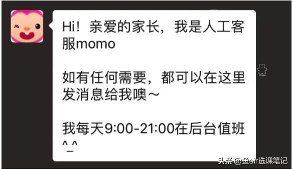 并且它的课程是没有回放功能的,需要给孩子的复习巩固的话只能重新约课学习,浪费课时,也浪费孩子的学习时间。建议报名的家长们做好课程的录播。