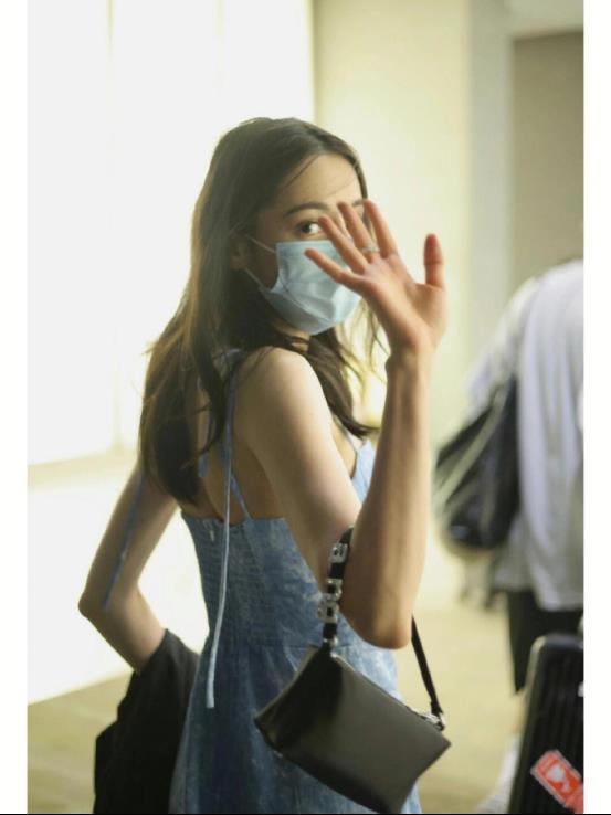 迪丽热巴这条吊带连衣裙,就是带一些灰色调的蓝色加上白色碎花,既在视觉效果上给人以清新自然的感觉,同时其色调也让整体看起来没有那么强烈的侵略性,对于整体温柔的形象气质也有着相当好的塑造作用。
