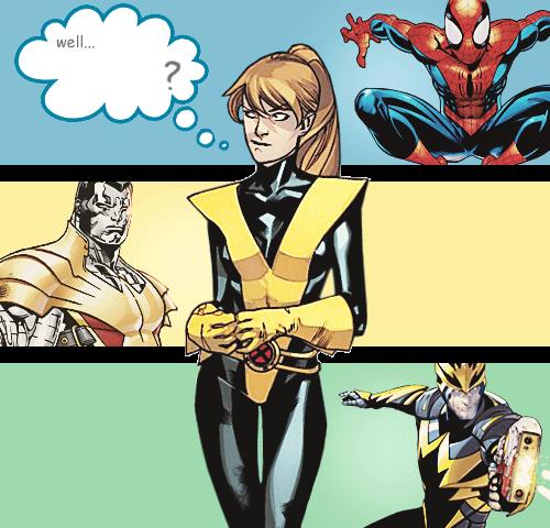 一个正义的佣兵,手法过于残忍不受超级英雄们的待见,但经常和蜘蛛侠联手对抗国际敌人,银貂也承认她对蜘蛛侠有超越战友的感情,但由于她消失了一段时间,彼得以为她死了,又遇到了mj,他俩的感情也就慢慢变淡了,但依然是战友。