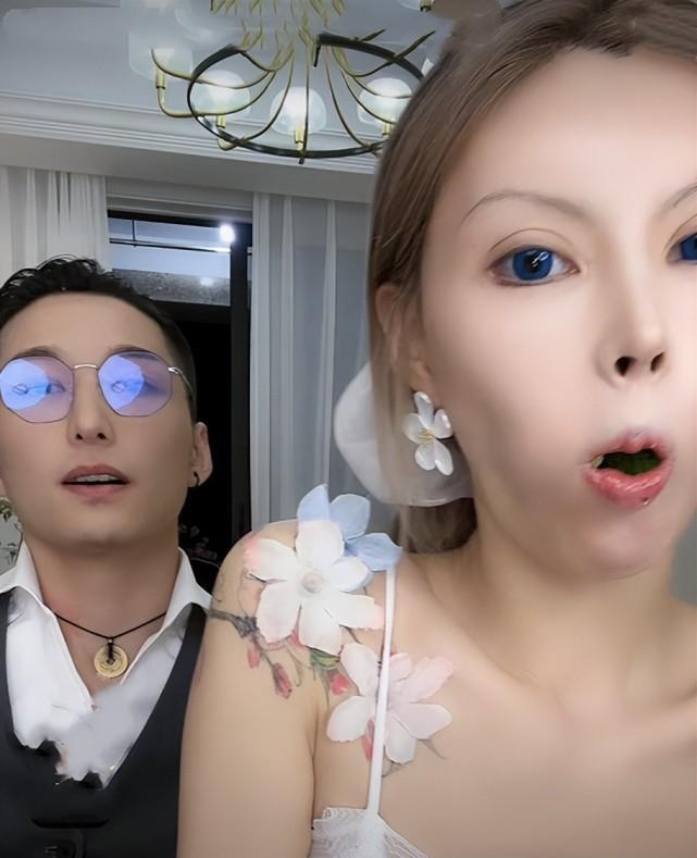 眼睛非常地大,鼻子也很挺,嘴巴略微有点小,月牙状的眉毛,显得她额头比较宽!一旁的男友也是个精神小伙,戴着眼镜、耳钉,头发梳的很高,戴着一块类似于铜钱的项链,一看就不是啥普通男人。