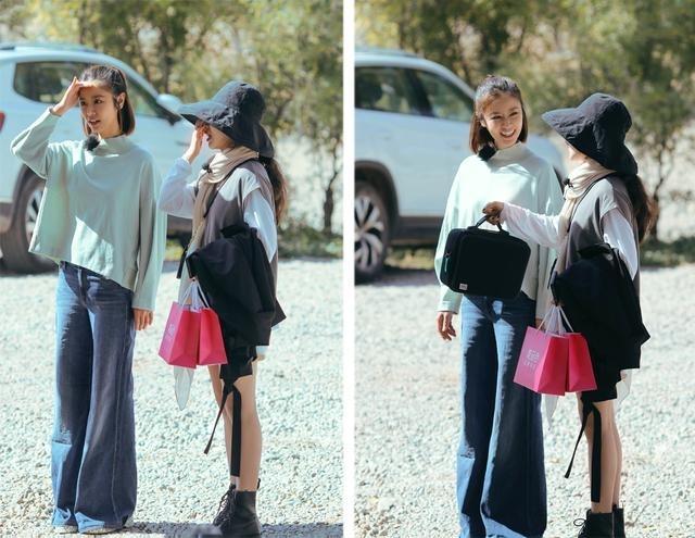 别说,这造型特别休闲范儿,但同时也很显高、显气质呢。上衣针织衫是短款的,下身的裤子是喇叭长裤。整体造型看上去就像是拉长了腿部线条一样,分分钟打造大长腿既视感。当然,她本身就有着167cm完美女神身高,穿衣搭配还是挺轻松的。