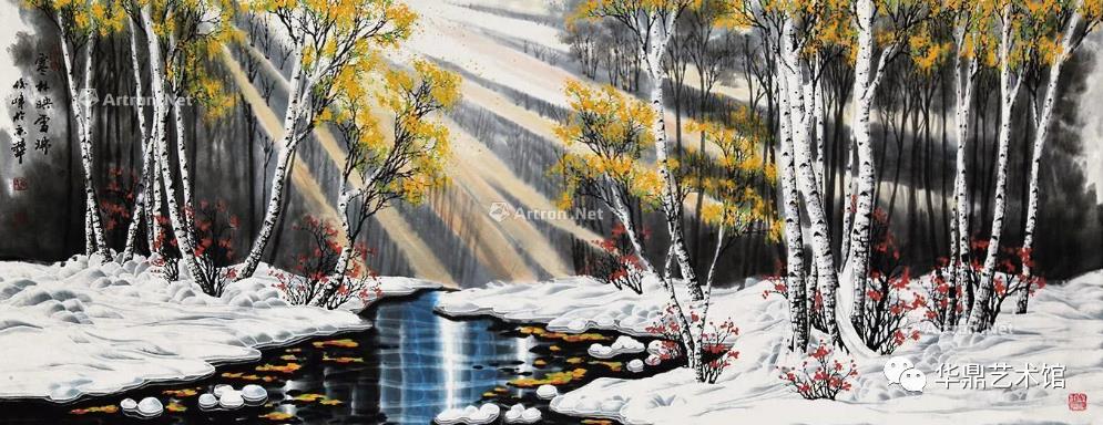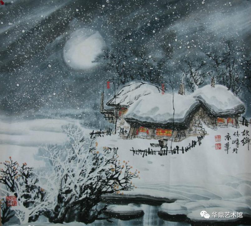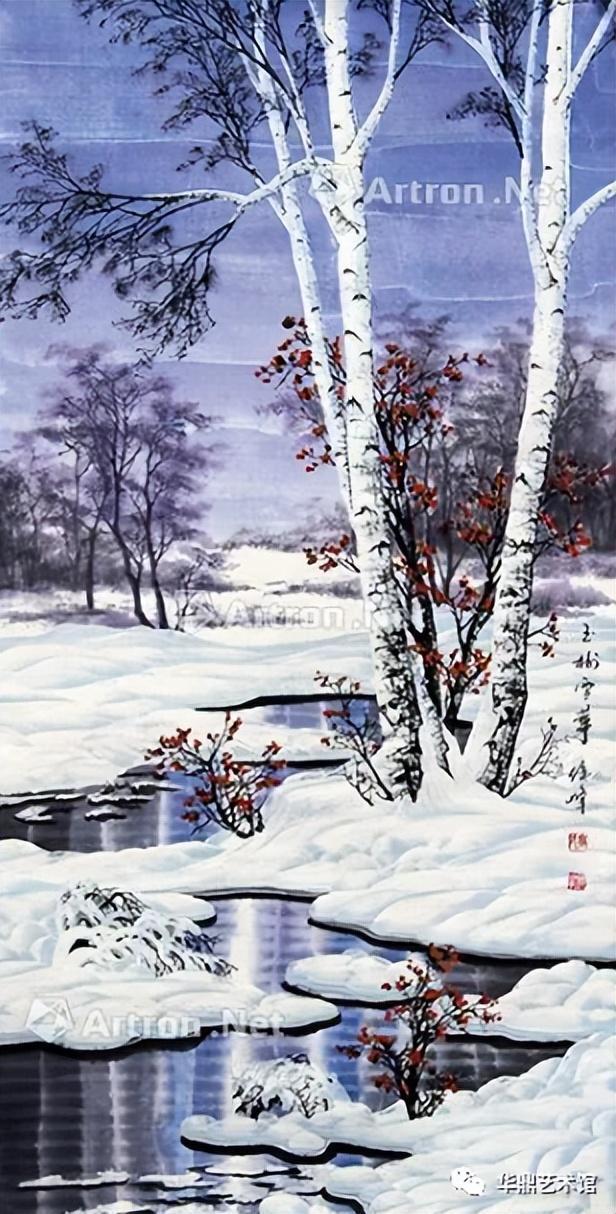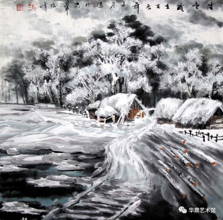 高俊峰的冰雪画具自然的情趣,他的作品没有冰冷的孤寂感,通过景色与构图高低错落,平中见奇的画法,景物与冰雪相得益彰,通过树木、房屋带个人亲切感,似景就在眼前。他的作品笔墨韵味浓厚,层层深入,形成幽深静谧之境,美不胜收。