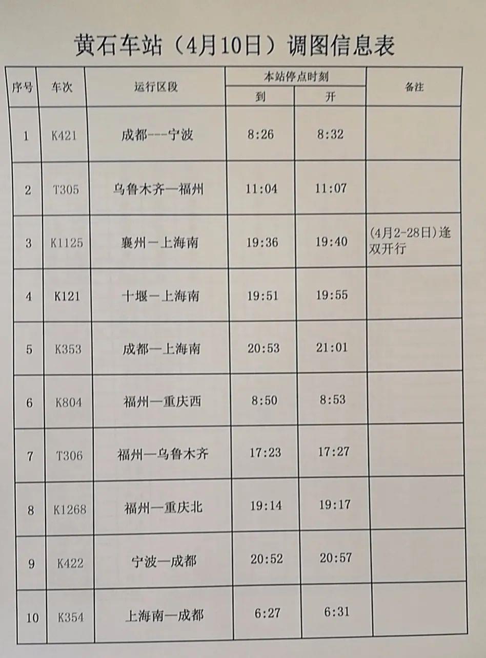 途经黄石的列车有调整!其中最值得注意的是