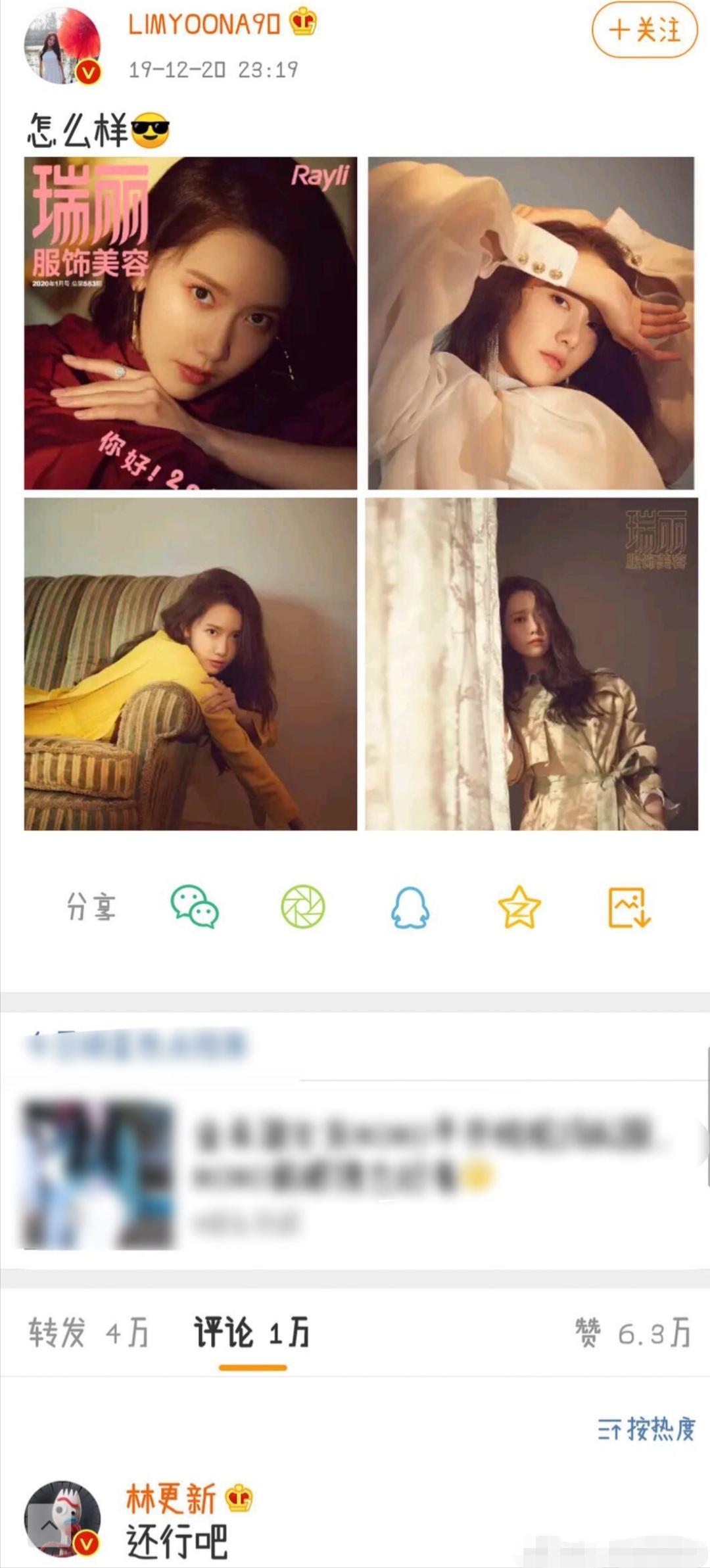 空闲时刻林允儿在微博发几张美图并配文称:怎么样!很显然这是爱豆想让粉丝们夸一波自己,但是林更新的回复就很直接了:“还行吧!”标准的直男回复呀有木有!