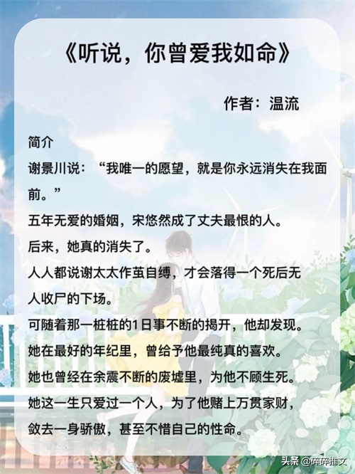 六篇高质量现言短篇虐文,虐到肝疼,《听说,你曾爱我如命》