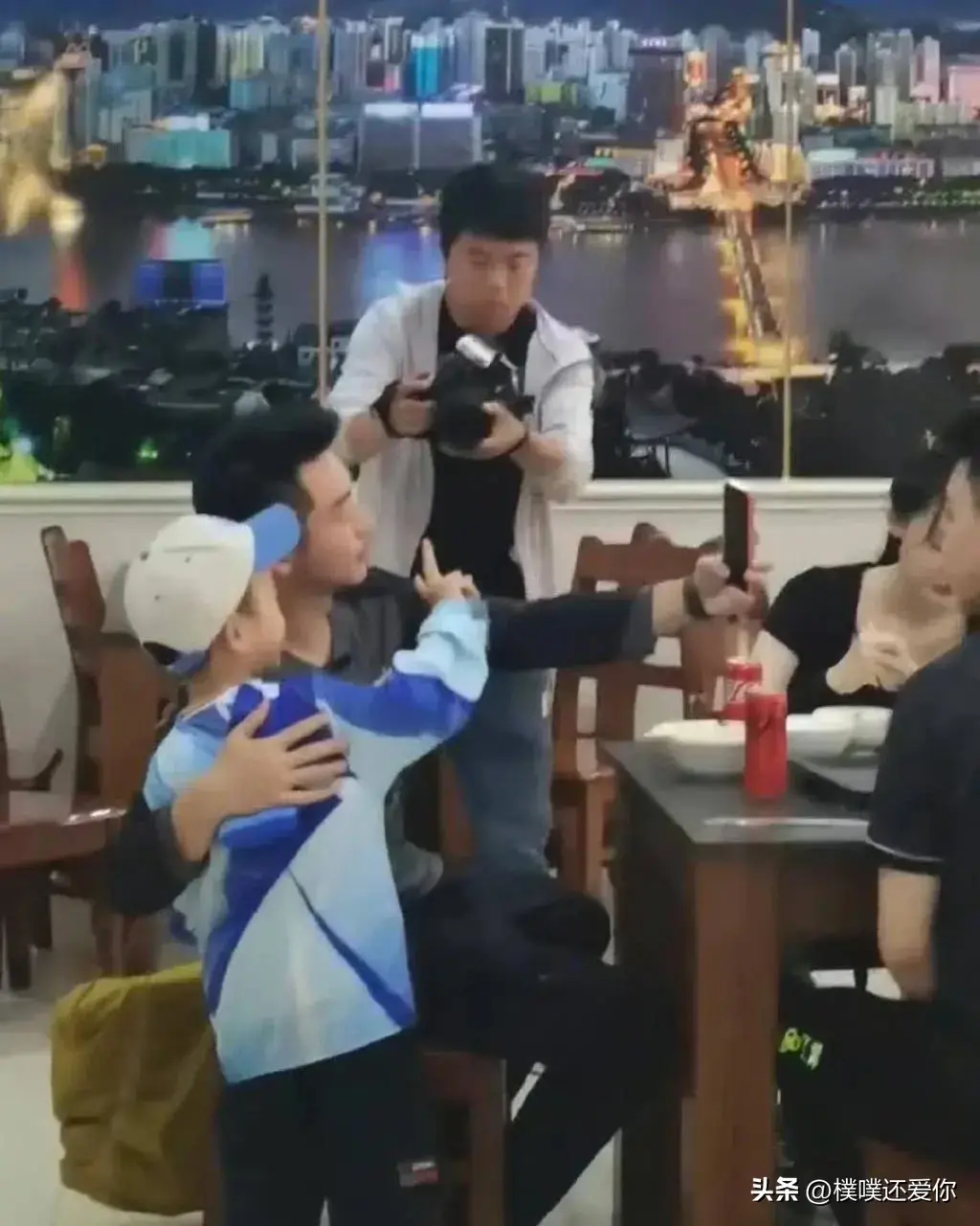 在吃饭的过程中,一位小朋友恰巧路过,发现了郑恺和苗苗,并鼓起勇气上前要求合影。郑恺和苗苗没有丝毫犹豫,立即答应小朋友的要求,并亲切地与小朋友合影留念。