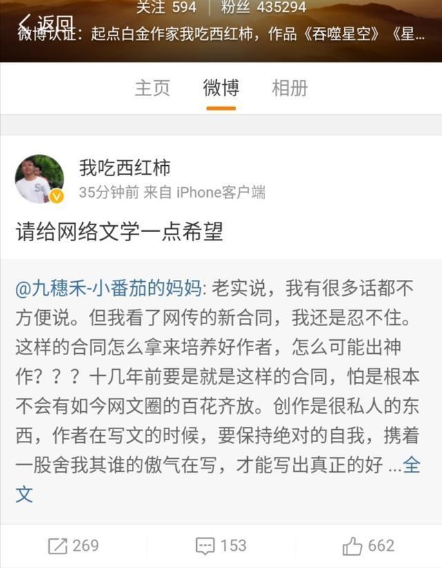 起点中文网白金大神我吃西红柿微博发声!