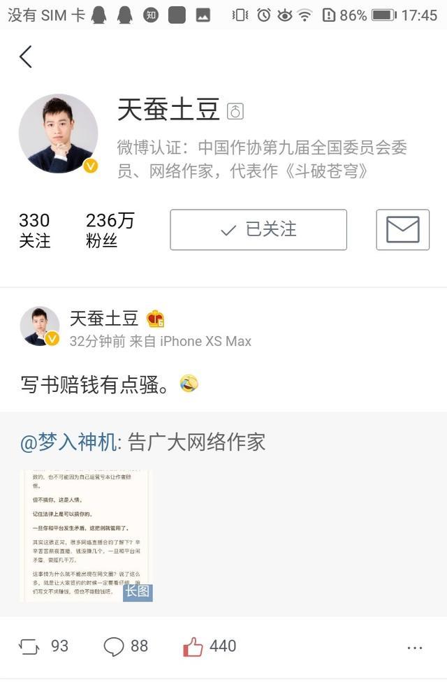 起点中文网白金大神天蚕土豆微博