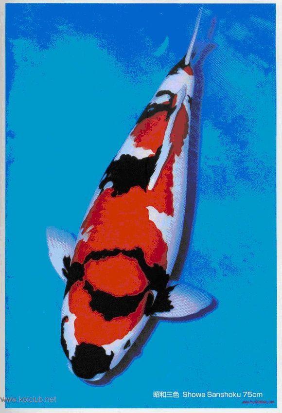 昭和三色锦鲤具有较高的观赏价值,华丽而矫健,是锦理中的精华。其主要品种有: