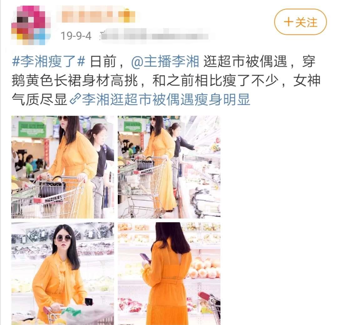 此前胖了N年的李湘,突然被网友晒出几张身材十分苗条的“偶遇照”,照片中的她身穿一袭黄色连衣裙,戴着墨镜妆容十分精致,现身某超市购物。