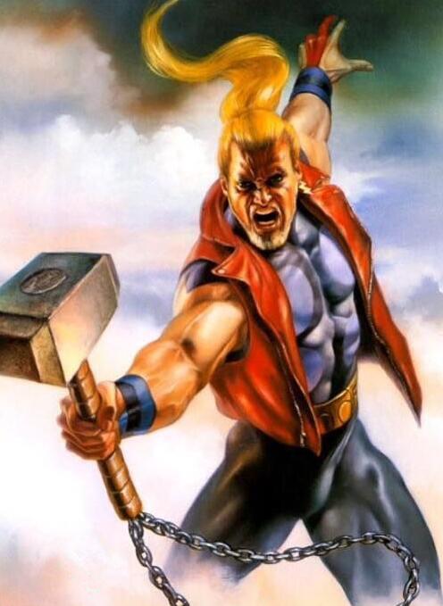 在《雷神3》中,有一个非常高大的建筑,上面有浩克的雕像,同时也有马面雷神。马面雷神本名贝塔·雷·比尔,在经过各种测试和考验后被选中,成为族人的守护者,他的身体被改造了生化机器形态。后来无意间遇到了雷神索尔,两人大战之后,马面雷神取胜并举起了雷神之锤,而且获得了雷神的神力。到后来,奥丁为其打造了一把新的风暴锤,同样有着极为强大的力量。马面雷神长相特殊,是第一个长的不像人的雷神。