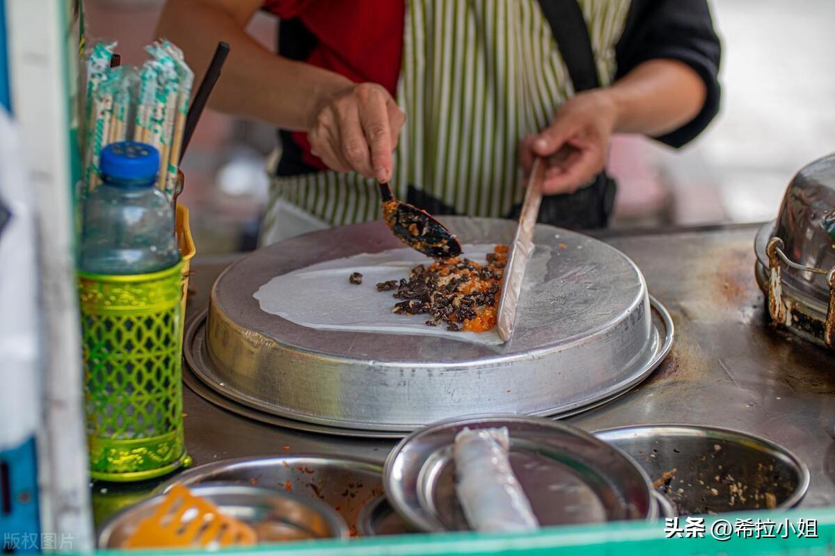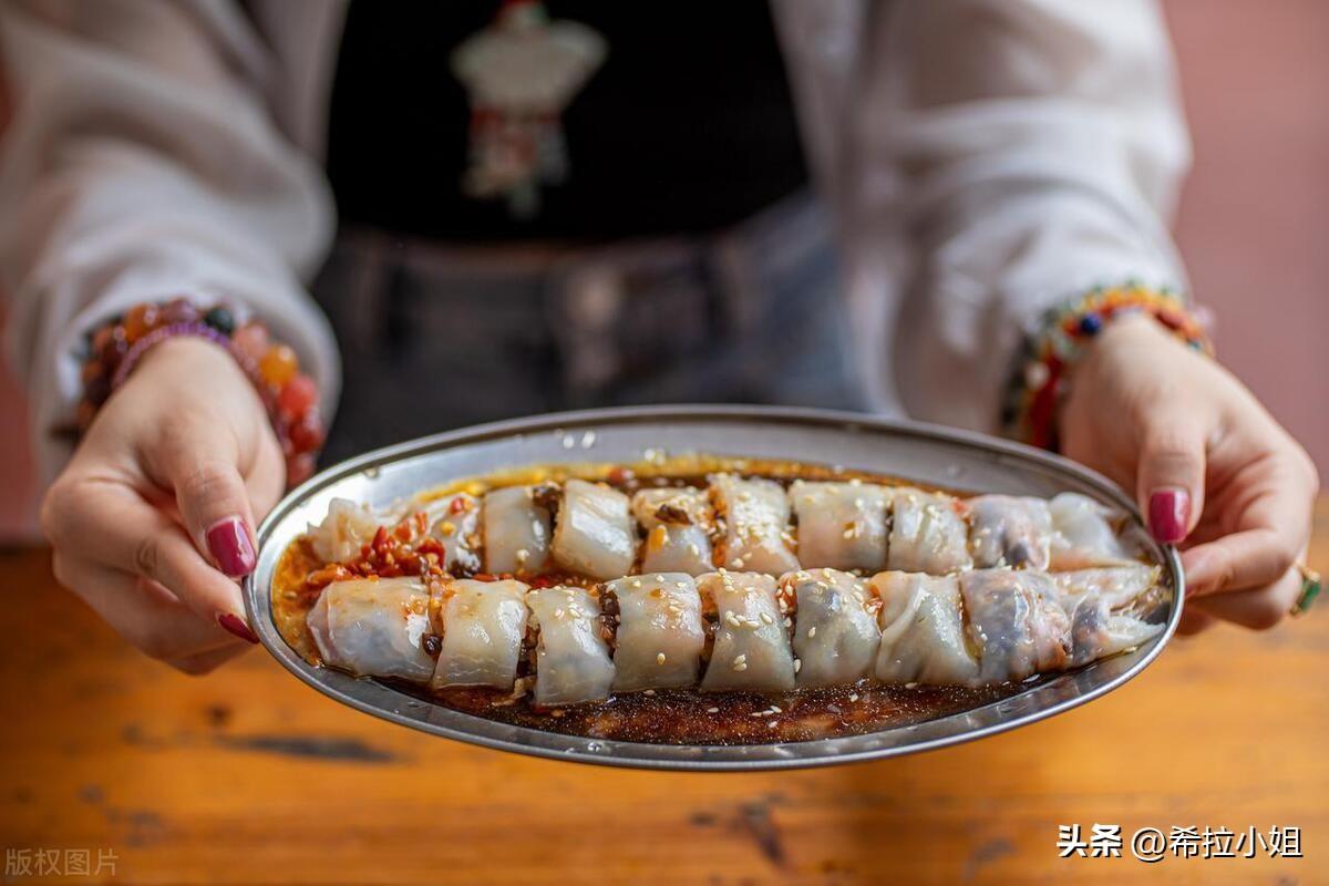 卷筒粉是将米浆摊成薄饼,并撒上一些葱花和肉末,蒸熟后再卷成筒状,再配上香油、酱料等,就可以开始吃了。吃起来鲜香软滑,很好吃。
