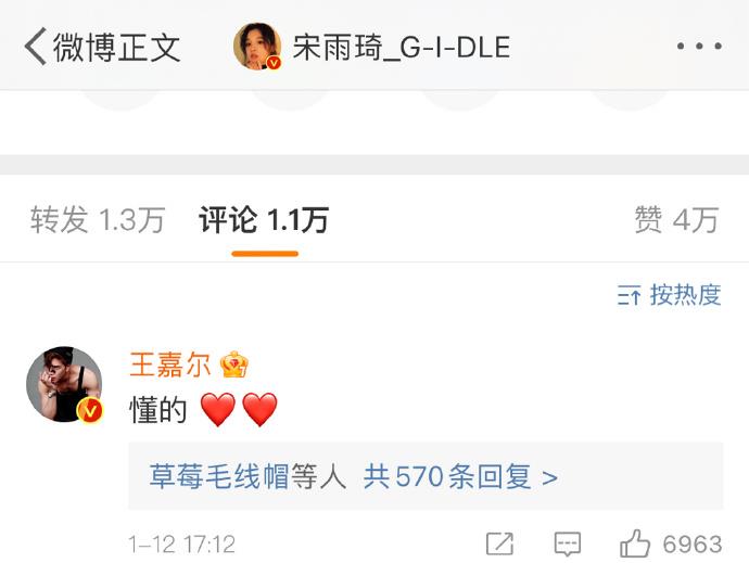 王嘉尔和#宋雨琦#在网络上互动频繁,常为对方新歌宣传打气;