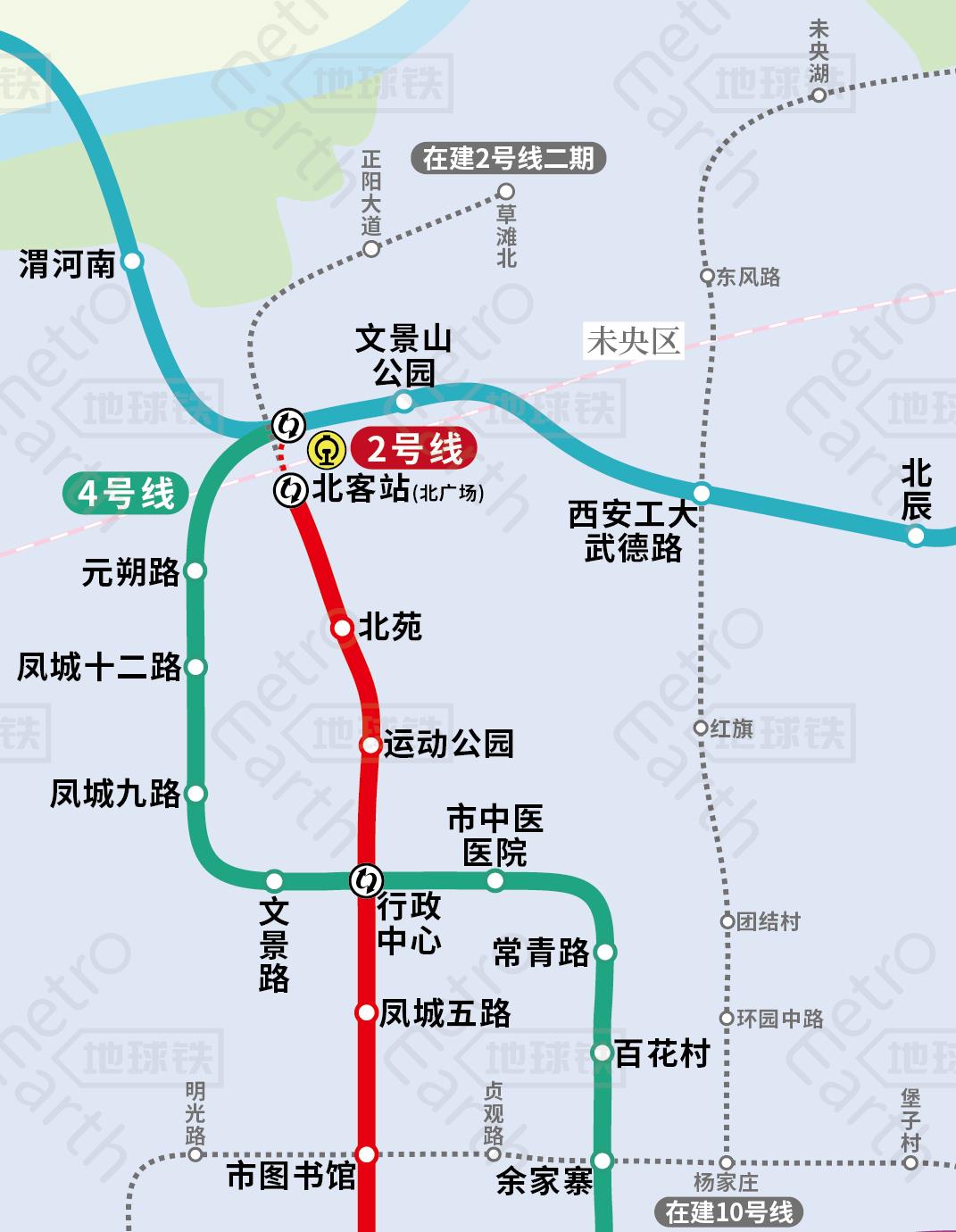 由上图可看出,西安地铁的线路发散方向比较均衡,向南、向西、向北都有新线路正在建设等待开通。