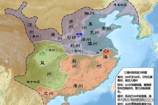 东汉时天下分为十三州,魏国大约占据九州之地,分别为司州(司隶)、豫州、兖州、徐州、青州,雍州(自设凉州)、并州、冀州、幽州,另外还有荆州北部和扬州一小部;吴国大约占据三州之地,分别为荆州南部、扬州大部、交州(自设广州);而蜀国只占据了一个州,即益州(自设梁州)。