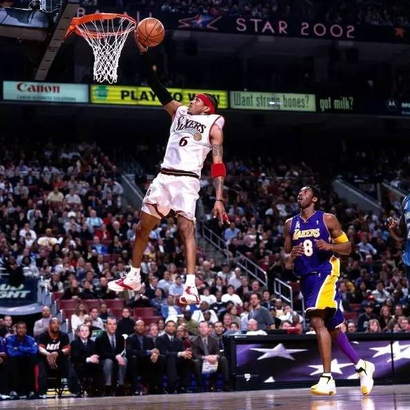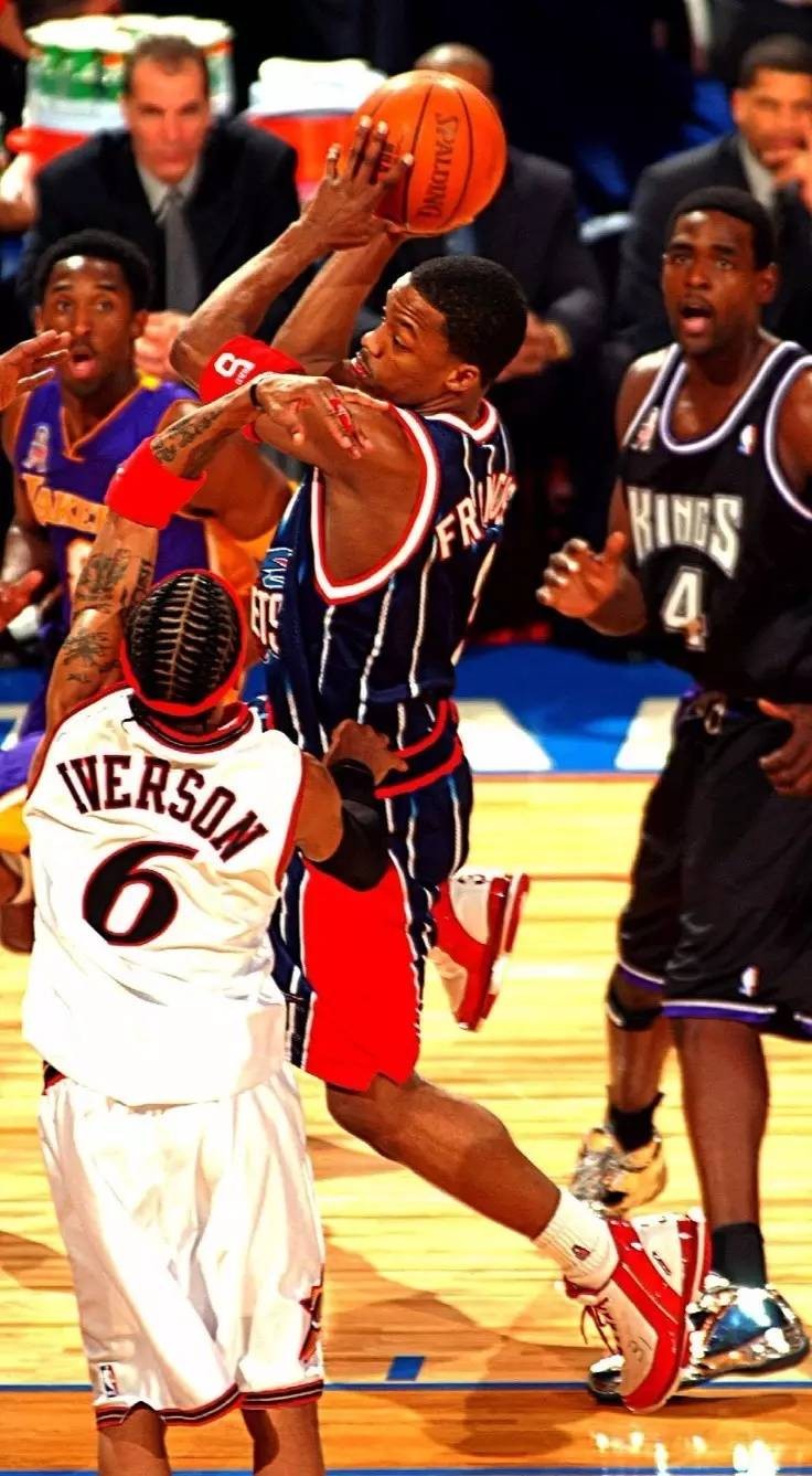 同时因为当时全明星球衣还不是统一的,举办地所在的分区要身穿主场球衣,因此就诞生了艾弗森身穿6号球衣这一幕!