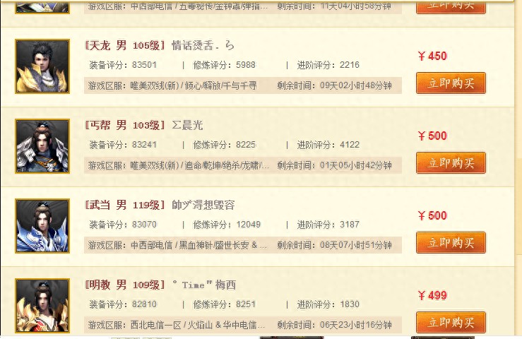 也就是说,我们把账号内的珍兽和各种不绑定的物品卖掉,换成元宝,再在平台上卖掉(100元基本上等于4500YB),此号内的珍兽和物品基本上就就值450元扣除手续费(约430元),那么我们再看看这个8.3W评分的裸号大概能值多少呢?