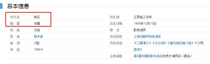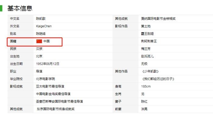 可是“白易”在查找资料时,却发现67岁的陈凯歌与51岁陈红的国籍却变成了:中国。