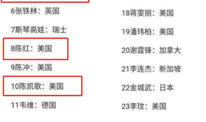 名单中可以看出,著名导演陈凯歌与他的妻子陈红,都已经加入了美国的国籍!