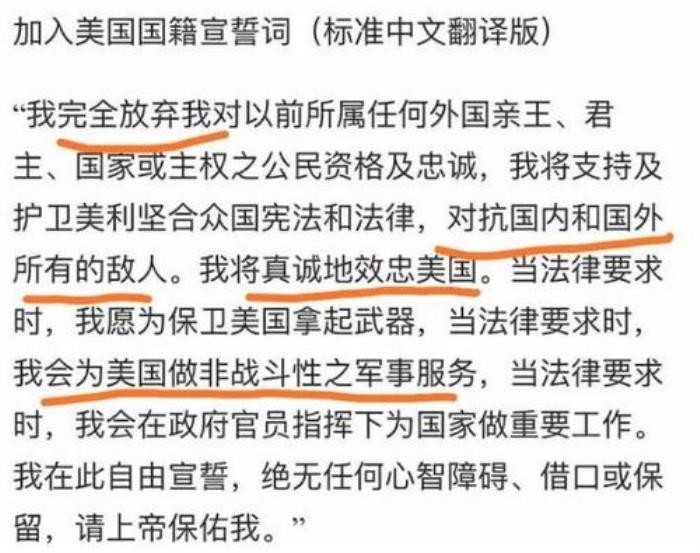 据了解,加入美国国籍是需要进行一段宣誓的: