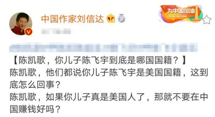 为此,中国作家刘信达也向陈凯歌导演发出了质问!