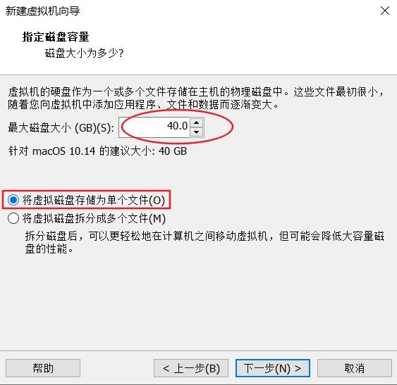 7、指定磁盘容量,按照建议大小来即可,从性能角度考虑,最好将虚拟磁盘存储为单个文件,点击下一步。